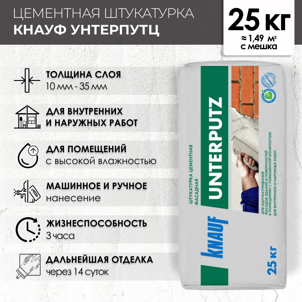 Фасадная штукатурка Кнауф Унтерпутц предназначена для создания прочного и долговечного защитного слоя на внешних стенах зданий. Она используется для выравнивания и подготовки оснований перед нанесением декоративных отделочных материалов. Эта штукатурка обладает отличной адгезией, водоотталкивающими свойствами и устойчивостью к внешним воздействиям.